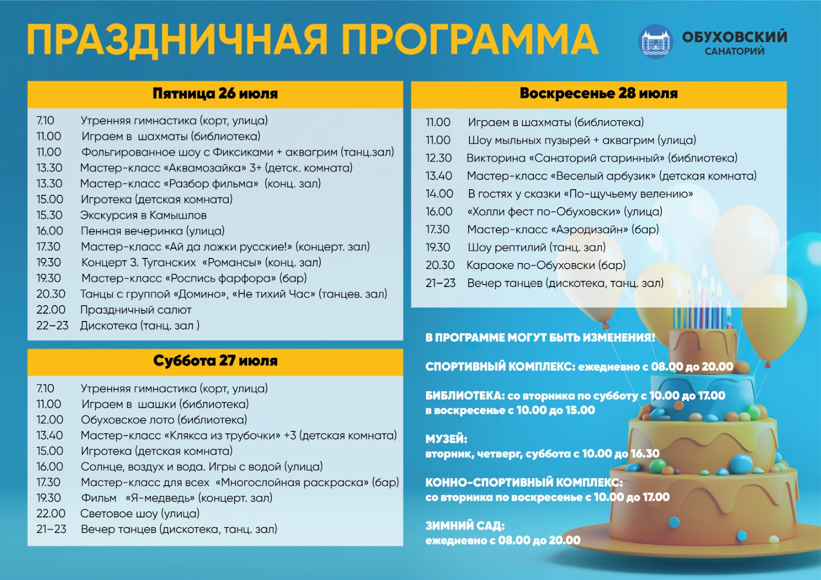 166 лет санаторию «Обуховский». Праздничная неделя с 22 по 28 июля