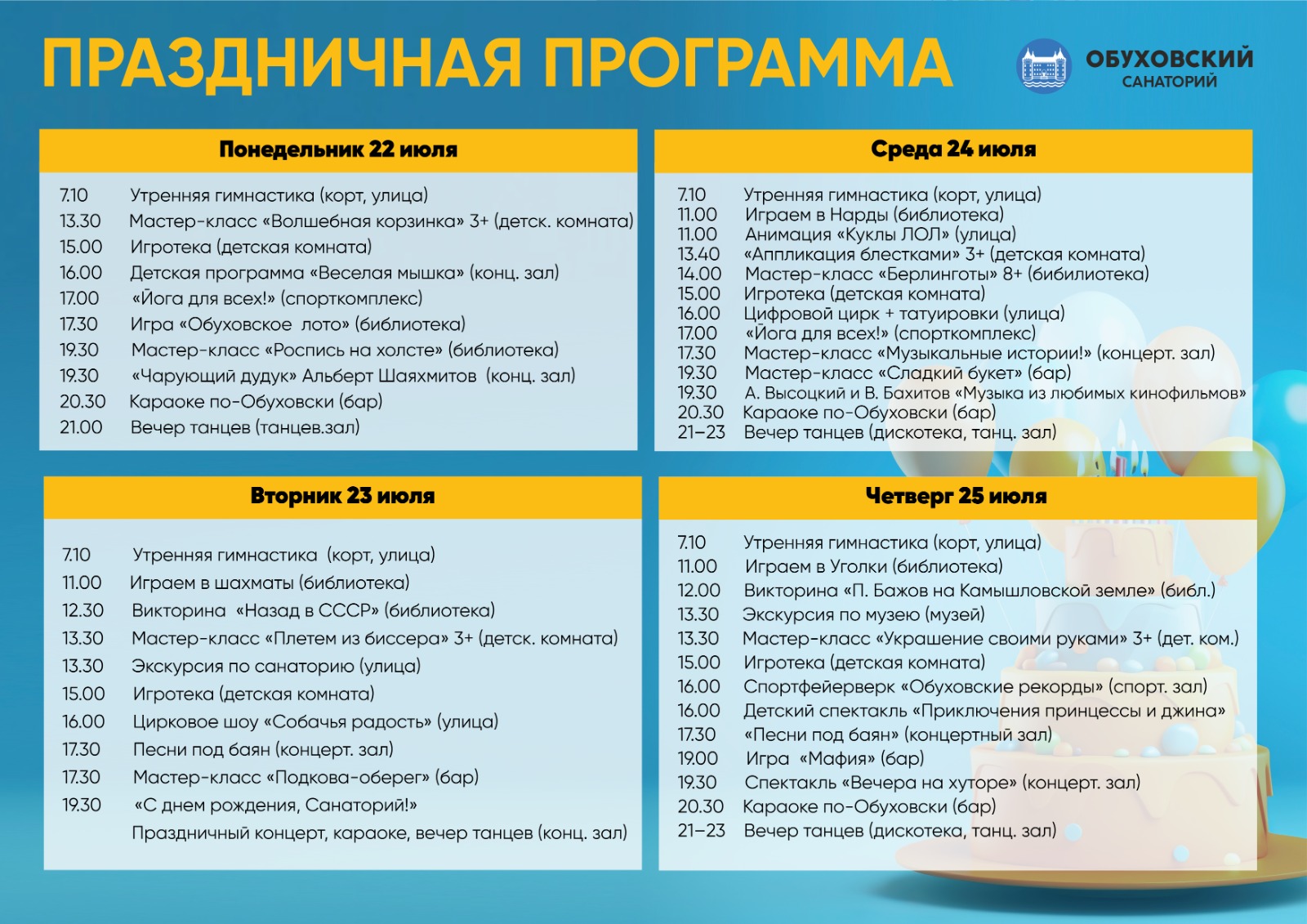 166 лет санаторию «Обуховский». Праздничная неделя с 22 по 28 июля